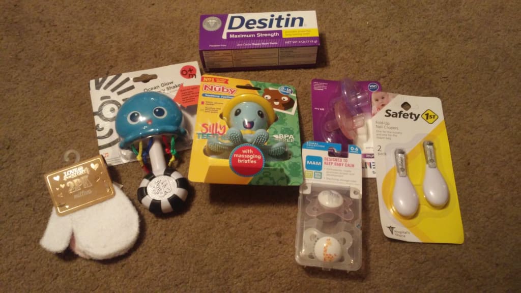 In our bag that we received was $80 worth of coupons, which, unless you shop at Target, are totally useless. For our actual items, we got two bottles, one four ounce Avent bottle and one four ounce Dr. Brown's bottle. Other items included two different trial packs of diapers and wipes, pacifiers, nursing pads and breastmilk bags and small samples of items in the coupon booklet. This bag without coupon prices was roughly $20 give or take. Overall, not the greatest haul, but if you are limited like we are to places that deliver or are in decent driving distance, you take whatever you can get.