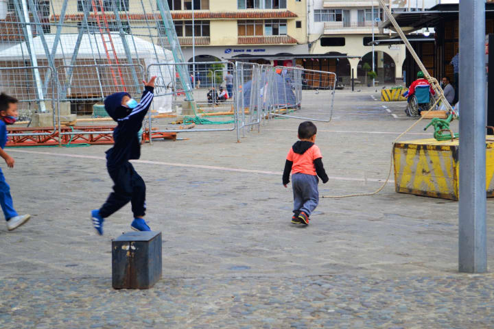 These kids reminding of me as a child. When my mom would take me to a store, I always asked her if I can play right outside. she always said "yes, just be careful. DO NOT go to far, stay close that I can see you." As a kid I played with anything, imagination to its full potential. I jumped the stairs, ran back and forth, anything that was in front of me.