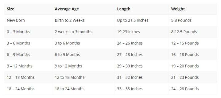 Baby Clothing Sizes Chart: