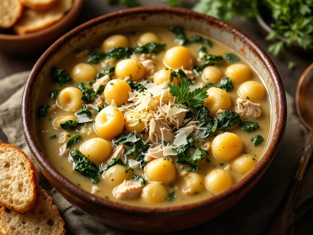 Store cooled soup in an airtight container in the fridge for up to 3 days. Reheat gently on the stovetop, adding a splash of broth or cream to refresh the texture. Freezing is not recommended (gnocchi may become grainy), but the broth-base (without dairy or gnocchi) freezes well for up to 2 months.