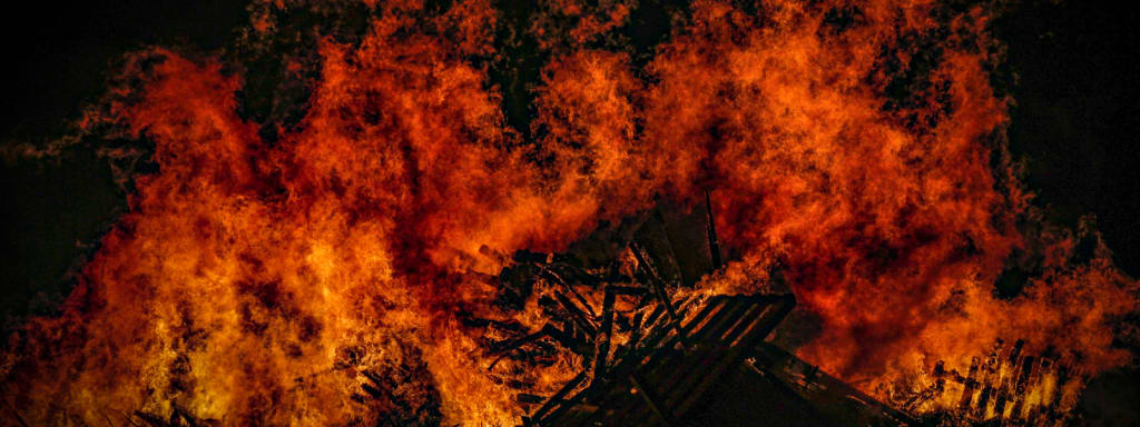 Sometime after summer, my Dad set fire to a field. He set fire to the stubble field behind the barn, where the sun goes down.