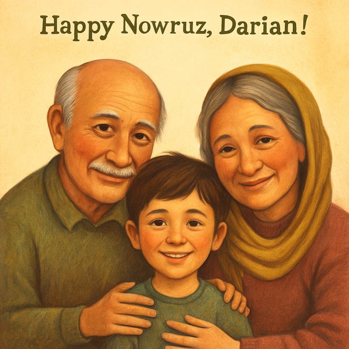 Grandma waved from Tehran and said, “Happy Nowruz, my dear Darian!”