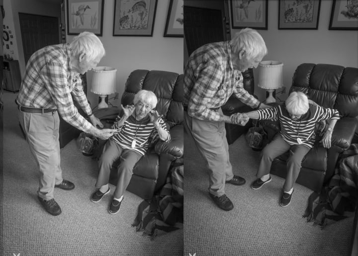 For the last five years, ever since Mom began to have heart problems, Dad rarely left her side. Despite his early onset dementia, he used his engineering background to managed her complicated medication regimes through checkmarking printed spreadsheets he made; took and recorded her blood pressure twice a day; tracked medical appointments; accompanied her to the doctor checkups; always had an arm or hand ready when she moved. When she needed a pacemaker, he wouldn’t leave her side in the hospital unless one of the children promised to stay with her, then only to shower and eat.