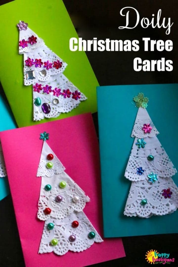 3. Doily Christmas Tree Cards: