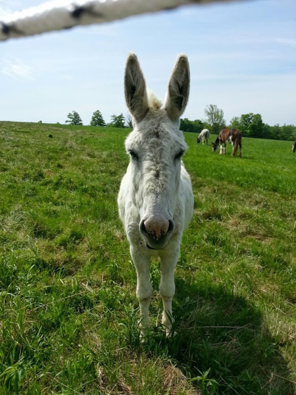 This tale is my homage to best donkey in the world, the boy I call "Donkey, Esquire." He's a proper gentleman with his shiny black hooves and ears so soft you can't help but rub them. Every time he sees me coming, he emits a very loud and impressive bray. I feel honored that he acknowledges our long relationship and I believe he truly returns every scintilla of love I have for him. And he has great teeth.