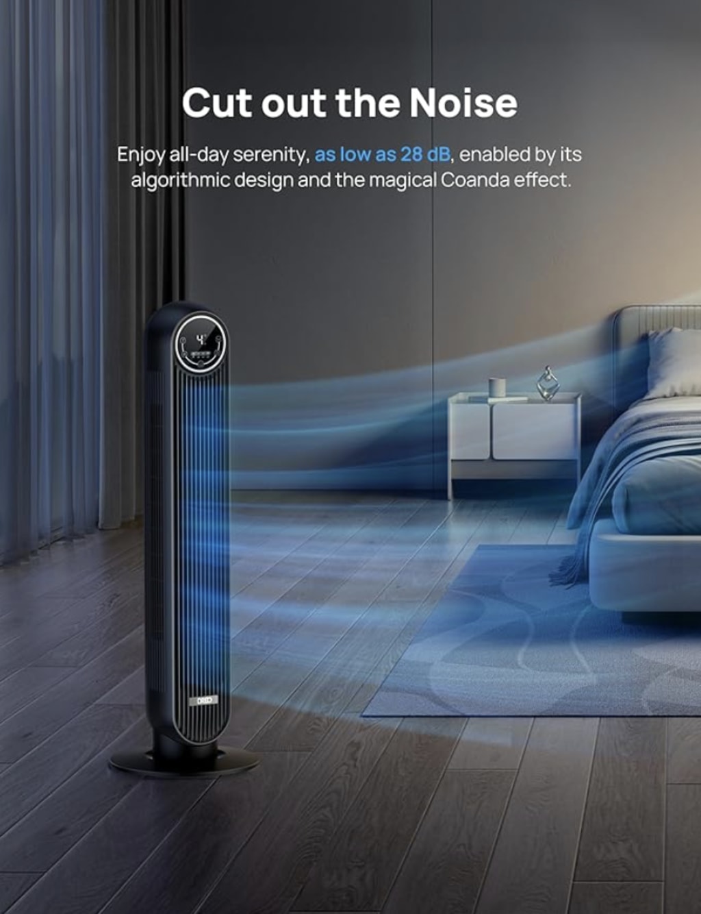 Furthermore, the Dreo Tower Fan boasts a sleek and modern design that complements any interior decor. With its minimalist aesthetic and matte black finish, it adds a touch of elegance to any room while occupying minimal floor space. Whether placed in a bedroom, living room, or office, the fan blends seamlessly into the environment, enhancing the overall ambiance with its stylish presence.
