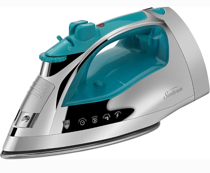 - Description: The Sunbeam Steammaster Steam Iron has a powerful steam output of up to 30g per minute and a stainless steel soleplate for even heat distribution. It has a large water tank, a vertical steaming feature for steaming hanging clothes and a precision tip for hard-to-reach areas. It also has a range of temperature control settings and an auto shut-off feature for safety.