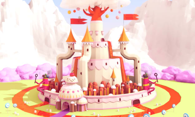 The candy castle was the most beautiful place Emily had ever seen. It was made of pure sugar, and the walls glimmered like diamonds. She was greeted by the candy queen, who thanked her for saving their village.