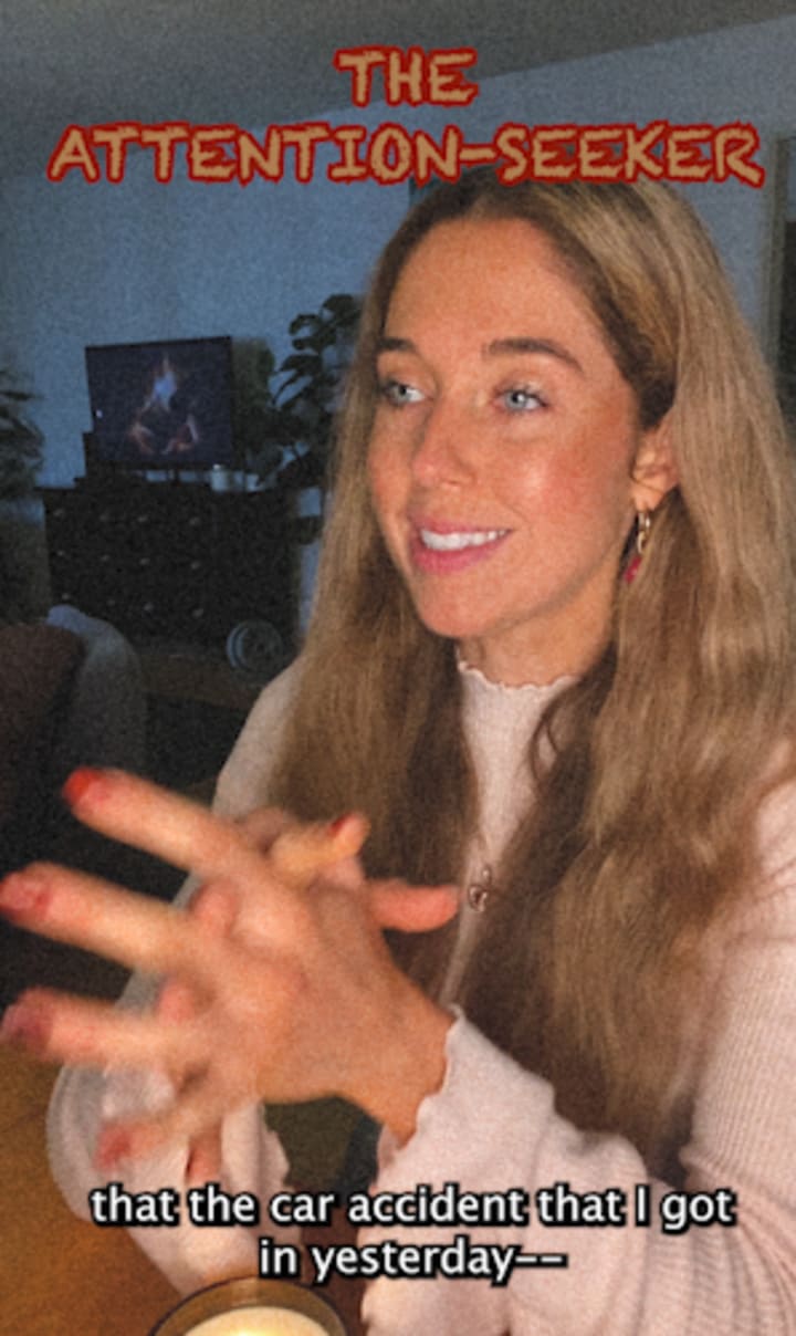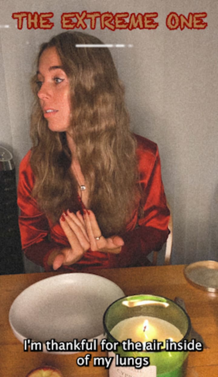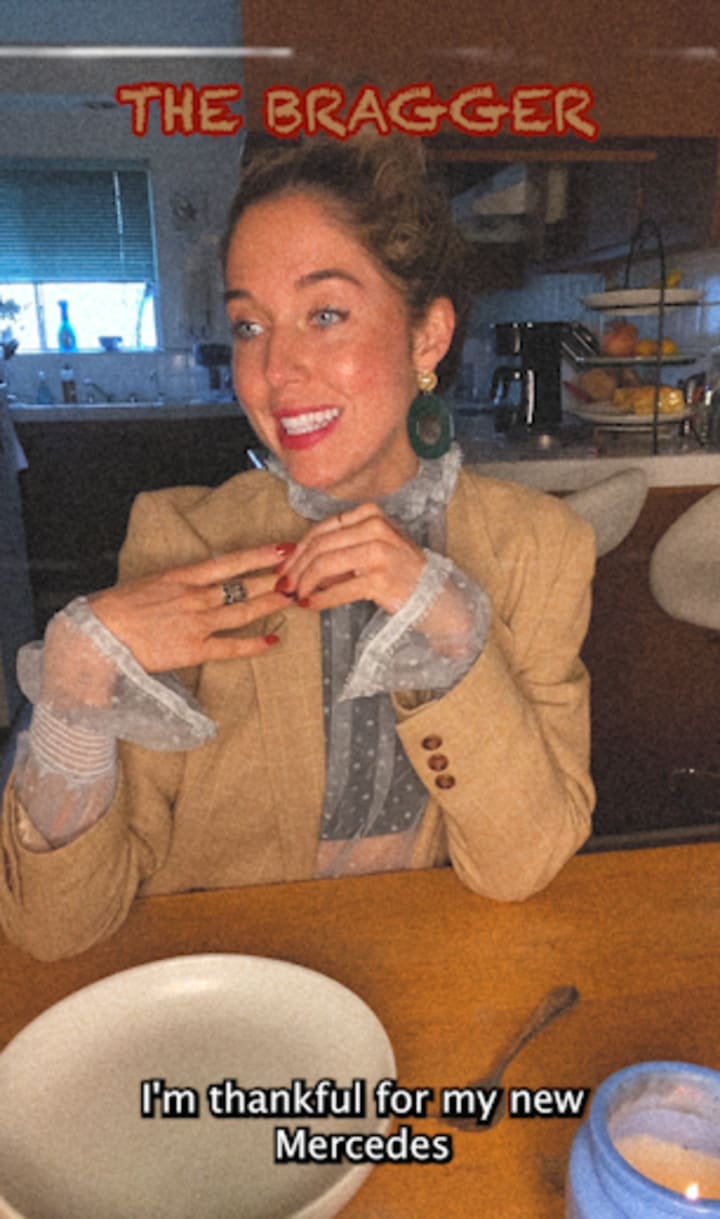 "I'm thankful the car accident I got into yesterday..." they announce as gasps are heard around the table (exactly what they wanted), "...wasn't worse..." they finish.