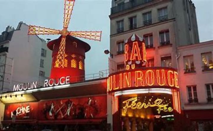 At the foot of Montparnasse stands the Moulin Rouge, or "The First Palace of Women." A red windmill identifies the cabaret, where the can can originated, with its risque leg lifts and whoops.