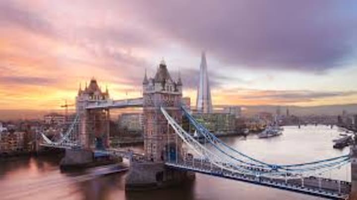 The Tower Bridge is an impressive sight. Its twin towers support a roadway that lifts to let ships pass. It is not a drawbridge, but a bascule and suspension bridge that operates using hydraulic power.
