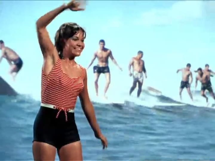 Sally Field played Gidget, a spunky, boy crazy girl who surfed and got into predicaments her widowed father had to help her out of.