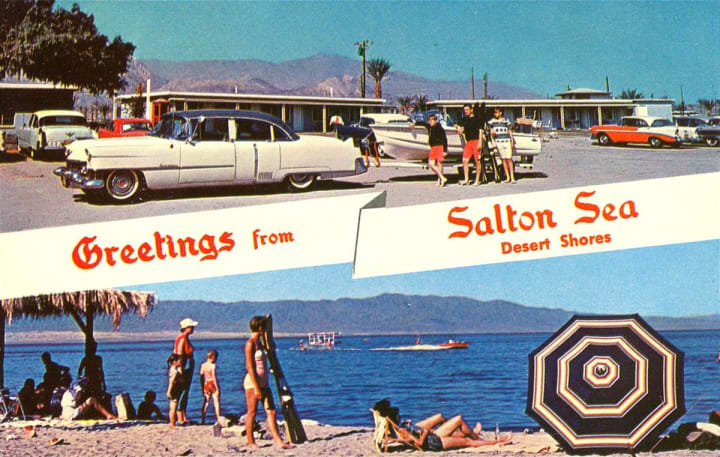 Salton Sea lies on top of an ancient lake called Lake Cahuilla. Lake Cahuilla naturally expanded and receded by runoff from the Colorado River over the centuries. The Salton Sea resulted from an accident.