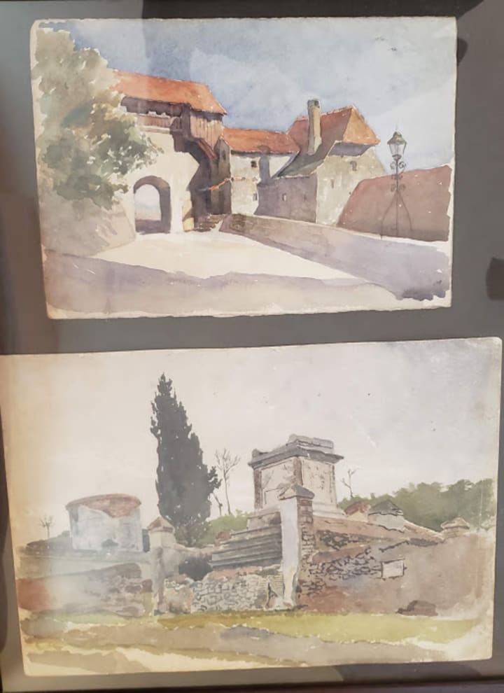 Mom was a frustrated artist. She wanted to learn to paint in watercolors well, like her father. John Gurd was an artist and architect in New York. Before he married, he traveled to Europe to study and paint. He was a skilled watercolorist and brought back many wonderful paintings. I have two of the European scenes in my dining room. Another painting I have is of a beautiful woman sitting in a chair.