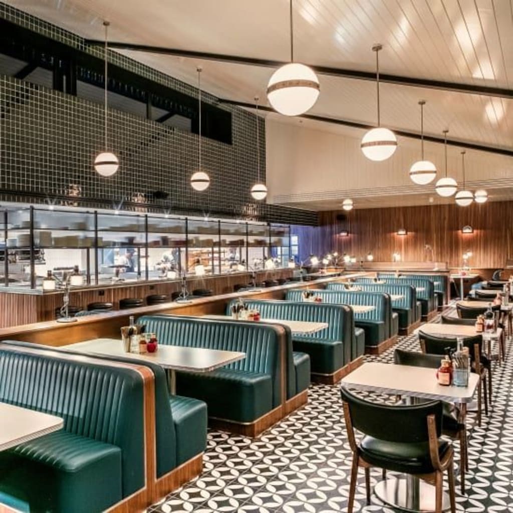 She put her hand on her hip and with an overly-plucked eyebrow raised, the waitress gestured towards his mug. "You want another cup of joe?"