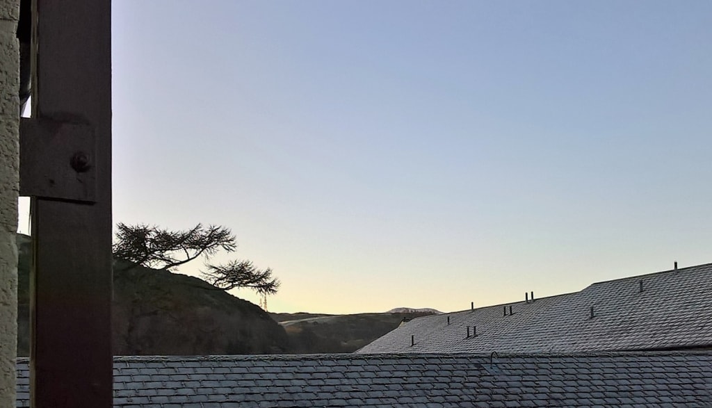 If I can see the third set of hills on the right clearly it will be a good day. But it's cold! It was freezing during the night and a heavy frost is still on the cars. My home is in Edinburgh, Scotland and 10 minutes from Blackford Hill., the one on the left.