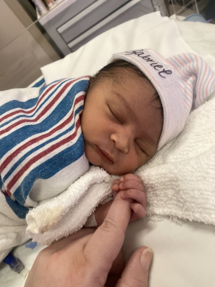 With my mom on my left and nurses and doctors surrounding me giving me encouragement with each push, I give birth to my beautiful son, Gabriel Alexander, at 1158pm. He weighed 5.8 pounds and was 18.25in long. All of a sudden I felt the weight of his tiny body on my chest and time just stood still for us as they cleaned me up. I introduced myself to him and told him that I’d waited a very long time to meet him. I tried to breastfeed but my milk hadn’t come in so we tried to give him formula but since he was born early his sugar bank wasn’t built up enough. He kept falling asleep while trying to eat so he had to go to the NICU the next afternoon to be put on dextrose while I had to wait in bed for my 24 hours on a magnesium drip to be done due to blood pressure issues right after birth.