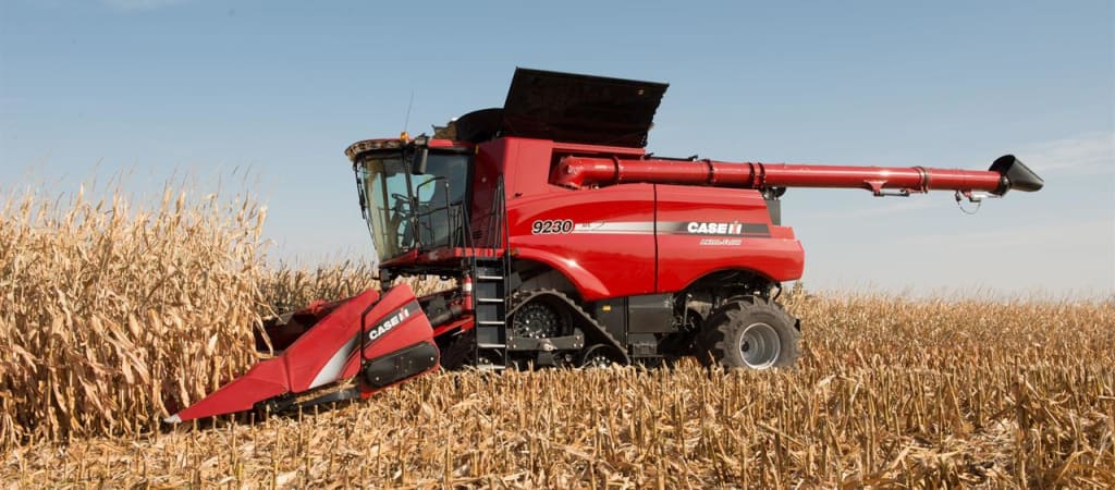 George has just completed a row of corn and was getting ready to turn back to the next row when he heard a loud noise from the front of the combine. He knew what had happened and he reached down to shut off the machine.