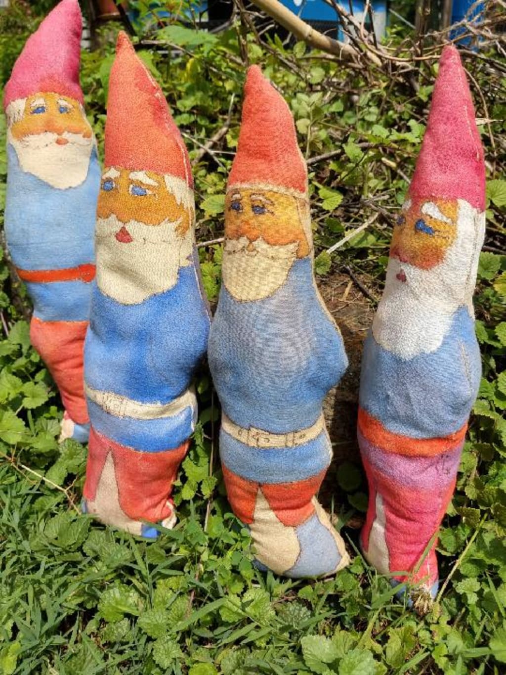 After the original gnome book came out in 1974, gnomes were a hot market. There were gnome coffee mugs, gnome candy dishes, gnome soap dishes, etc. Then there were all the indoor statues you could buy in various sizes and made of various materials. You could buy small 6 inch gnomes of wood or a 12 inch clay statue. Florist were using them in their arrangements. Children wanted a soft gnome to sleep with so the market provided that too. Next came the market for lawn ornaments. You could buy them out of concrete or pottery.