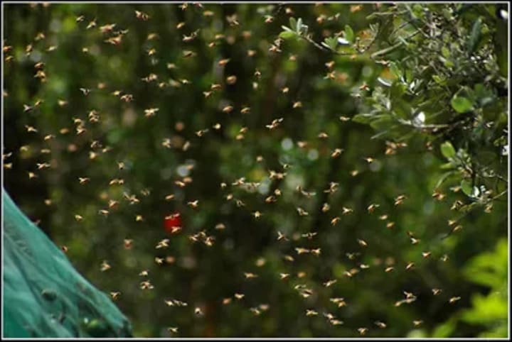 Once every few years, there would be a dreaded hum in our backyard, and we knew to keep clear for a couple of days. It was a wild African queen bee taking control of the hive, causing the colony to swarm — for some reason, they chose our backyard to do this.