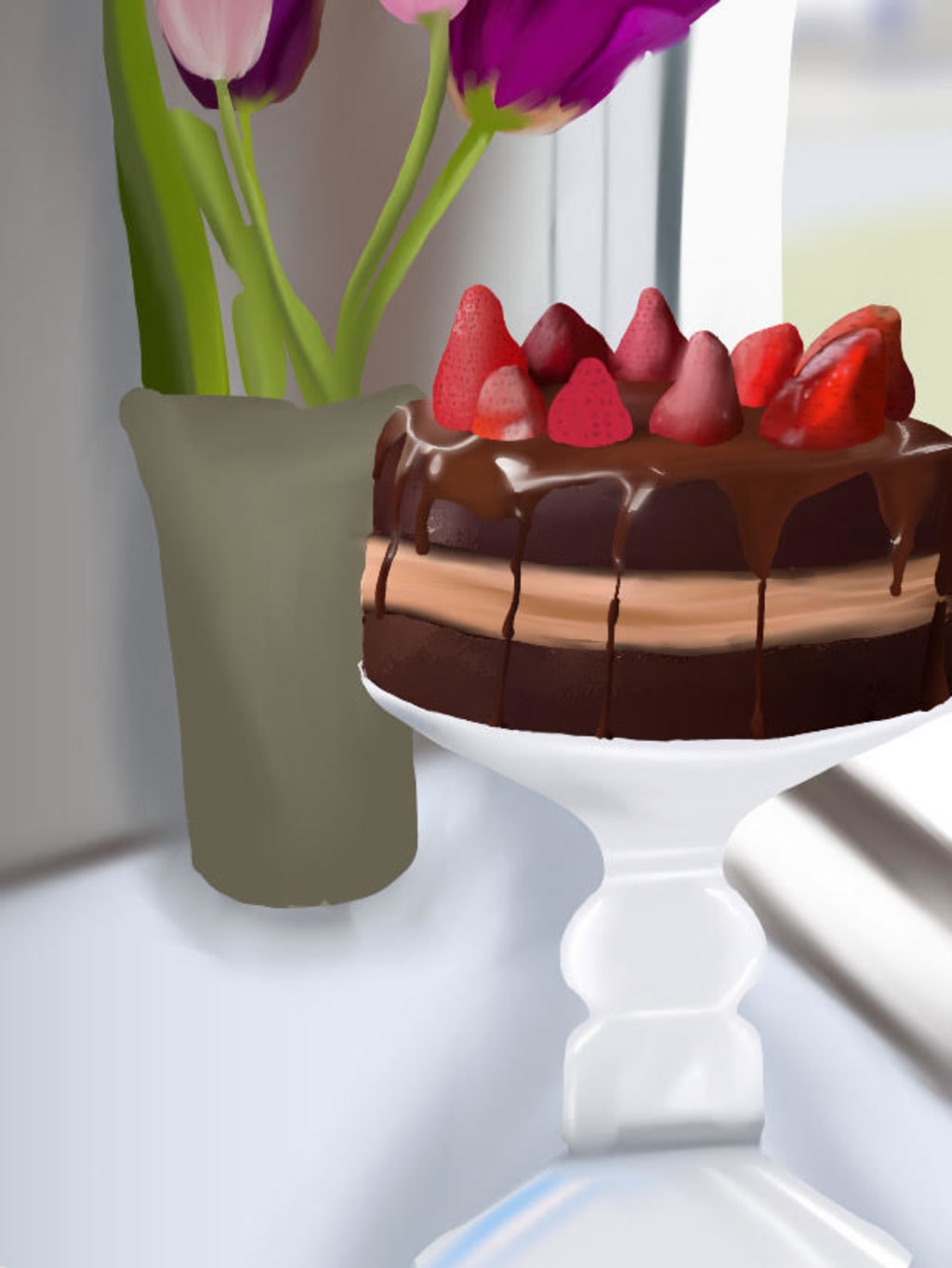 Gram’s laughter surrounds us, along with the smell of her chocolate cake cooling in the window.
