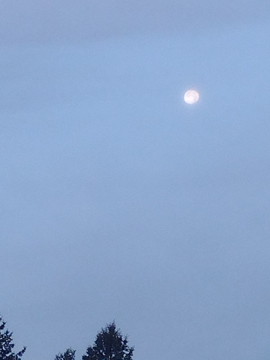 This morning, I was out to greet the sun and my first look out the door was the full moon. This photo above was taken at about 7:37 a.m. Stories were told of Nokomis growing up. In Ojibwe Nokomis is Grandmother and the moon was always referred to as Nokomis.