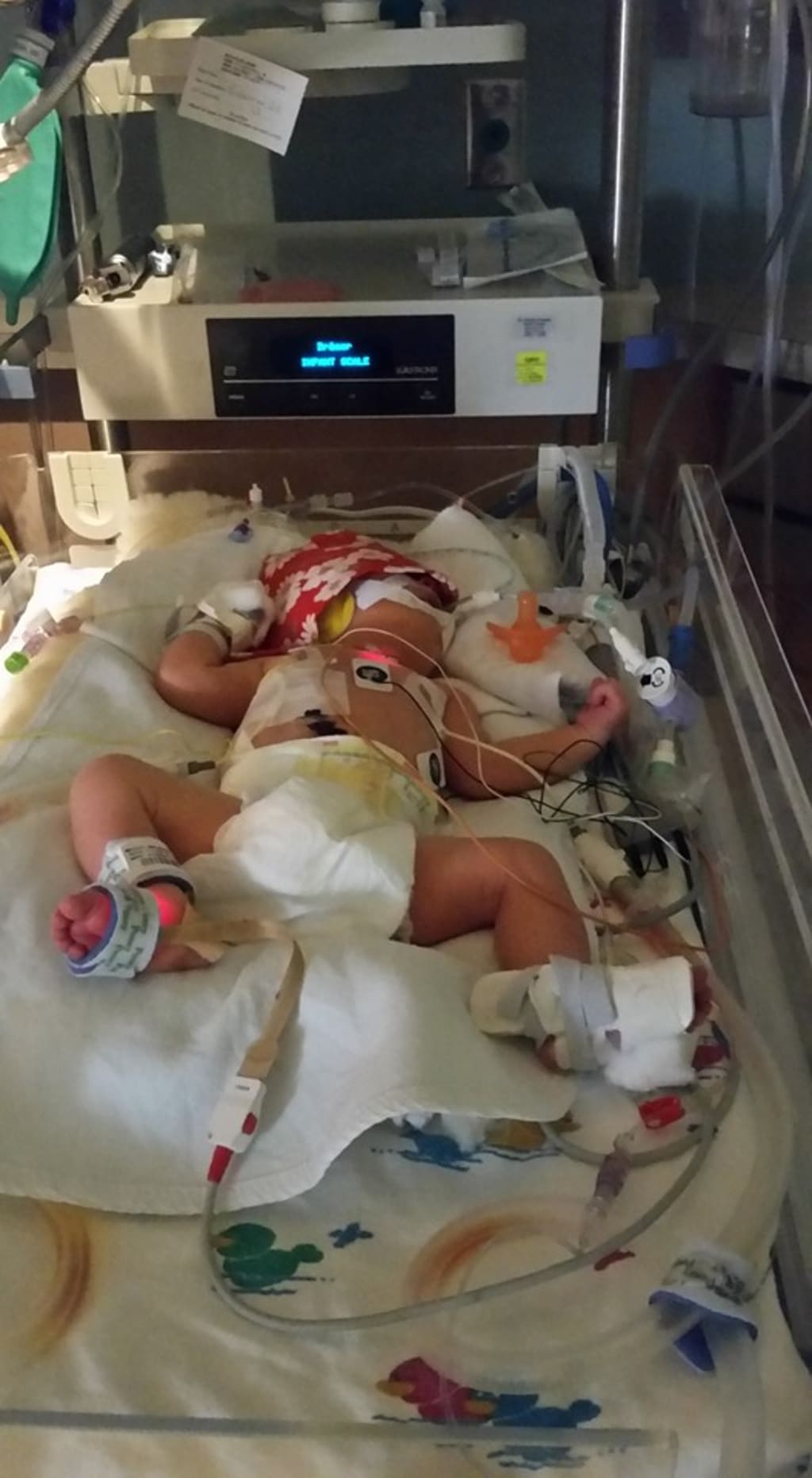 I finally got to hold my son a week after he was born. It was only for a few minutes and he was still hooked up to everything but in those few moments, time stopped for me. Nothing else going on mattered at all. I didn't think about anything but my sweet boy in my arms. It was a scary road but he was and still is a fighter. He is our hero and is now a funny, adorable, and sweet 1 year old. The only effects he has from his traumatic start are small hole scars on each side of his chest from the tubes and he rattles when he breathes. It causes him no distress and he will likely always have that. Before that experience I never thought much about donating to charity for babies and whatnot, but now, I have a much different view on it and since living through it, I donate as much as I can as often as I can.
