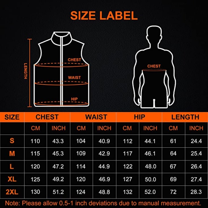 [13 heating zones Keep you warm]Our upgraded warming heated vest is made of high-quality carbon nanofibers heating elements,13 heating zones are distributed throughout the collar, back, shoulders, waist and under the two pockets for core-body warmth.