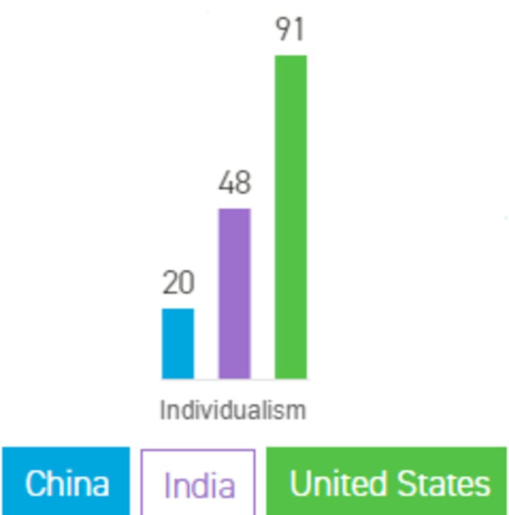 As per the index, the Americans stand out as self-centered individualists (not strange, huh?) whereas the Chinese prefer loyalty to defined groups in exchange for protection. Meanwhile, we Indians, with an intermediate score of 48, show both individualistic and collectivistic traits.