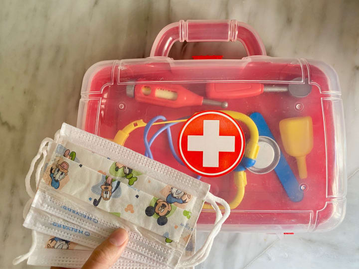 I made sure we had kid-friendly masks with Mickey Mouse on it. The Mickey design got them very excited about wearing it---and I think it contributed greatly to their compliance. Click below to see some great toddler-sized mask options. (By the way, the kind we use is the last one in this list and it’s the same kind my children’s hospital uses. However, they’re a bit expensive. So, the ones before that are more affordable options!)