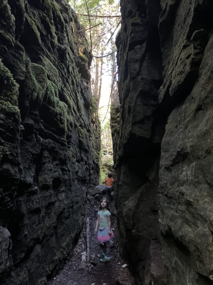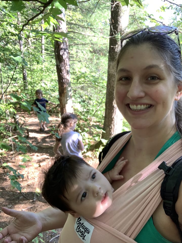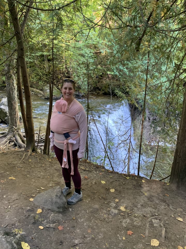 That first trip we didn’t make it too far, only 1.8 km. I needed to get used to baby-wearing again, I’d tied it a little bit loosely. But, I got my family out of the house and we had fun! The kids loved clambering all over the rocks and the little waterfall was beautiful. It made me realize that I didn’t need to feel trapped at home.
