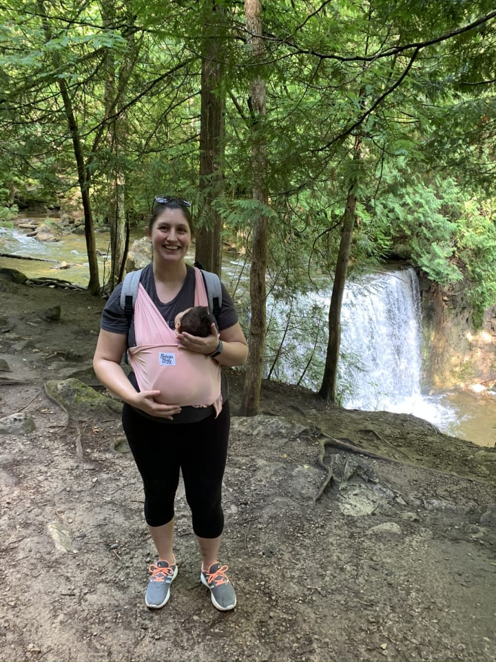 A member of a local Facebook group I’m in shared that they’d visited a small waterfall nearby and had a blast. The kids were allowed to climb down and play in the water, there was free parking and shaded trails. I became a little obsessed with visiting this seemingly magical place, and after my doctor gave me the all-clear we went for a quick day trip. I packed a picnic lunch, the diaper bag and my baby wrap and we were off!