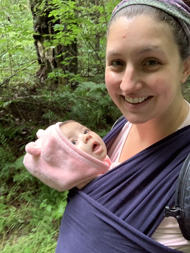 Babywearing made all the difference. I had my hands completely free, I could carry a backpack with no problem and I could look down and see my baby at all times. She would look around at first but then would always fall asleep. And if I needed to stop and feed her, it was easy to pop her right out.