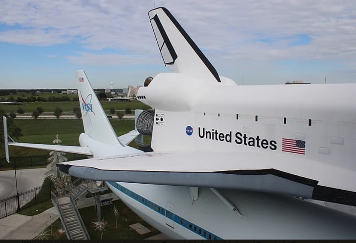 ●A full-scale Space Shuttle replica mounted atop the original NASA 905 shuttle carrier aircraft