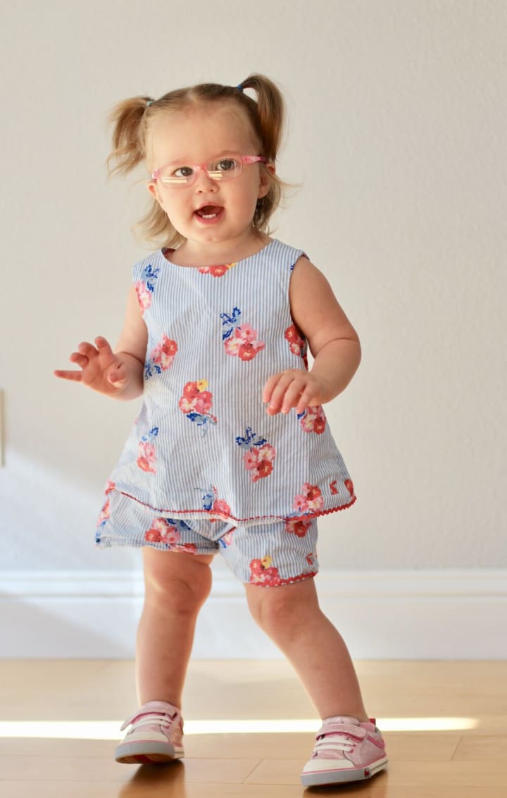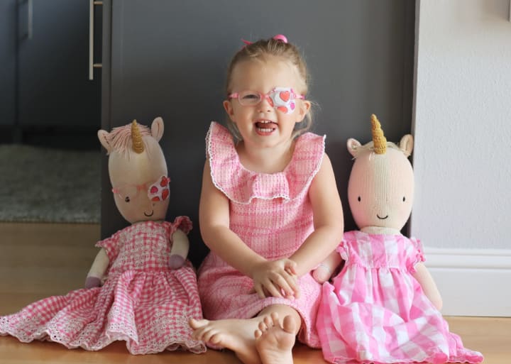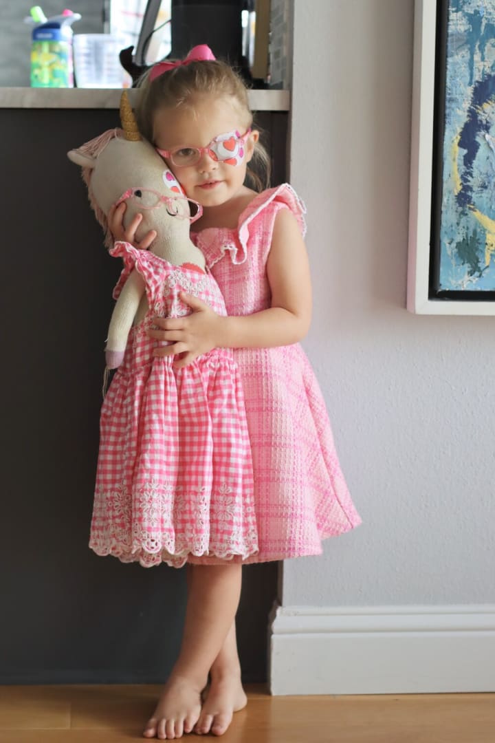 Fast forward over 1.5 years later to this very moment—and I have an almost 3-year-old Joules that absolutely LOVES her glasses. She actually gets upset when she doesn’t have them on! Joules is responsible with her glasses, always knows where they are, and wears her eye patch for 2 hours/day without ANY problem whatsoever. I have fully accepted her eye condition, she is a superstar, and--to be honest--I couldn’t picture her any other way now!