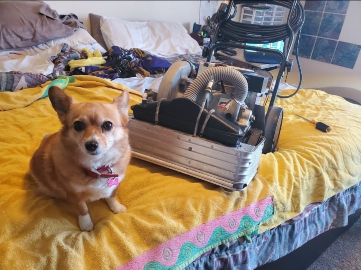 2. When he’s working on his carpet cleaning machine