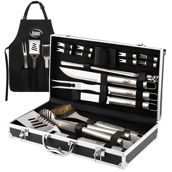 7.) Grilling Tools: If he's a fan of grilling, a set of grilling tools is a great gift. Look for a set with a spatula, tongs, and basting brush.