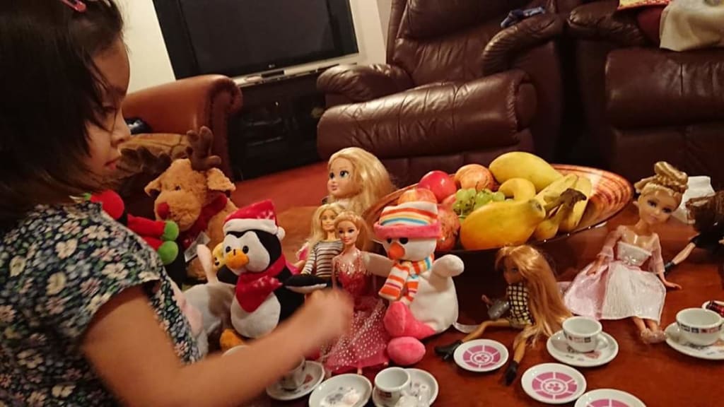 It was a usual day. Me and my kids were having our pretend tea party with all the dolls and soft toys. My daughter made all her dollies and other toys sit in a row and neatly placed cups and saucers in front of each of them. She also put plates for the cookies. She then said she is making tea in her kettle which she put on her little gas stove. I casually asked her if she needed her brother to help her. She said in surprise that boys don't enter the kitchen and she continued her play making her brother sit just next to her toys in the tea party! Her answer didn't let the day remain usual for me!