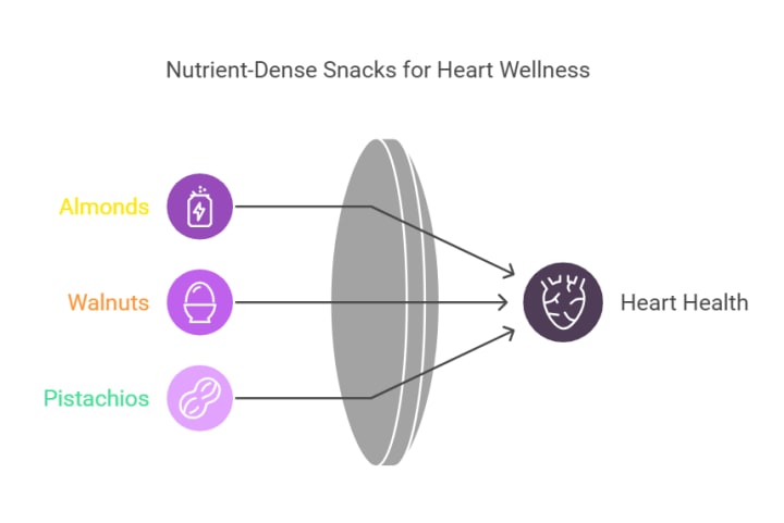 Nuts such as almonds, walnuts, and pistachios are nutrient-dense snacks that include healthy fats, protein, and fiber. Regular eating of nuts has been related to decreased cholesterol levels and a reduced risk of heart disease. A modest handful of nuts may make for a tasty and heart-healthy snack. Incorporate nuts into your diet by adding them to salads, oatmeal, or simply enjoying them on their own as a satisfying snack. Remember to practice portion control, as nuts are calorie-dense. They are also high in fat, albeit heart-healthy fats.
