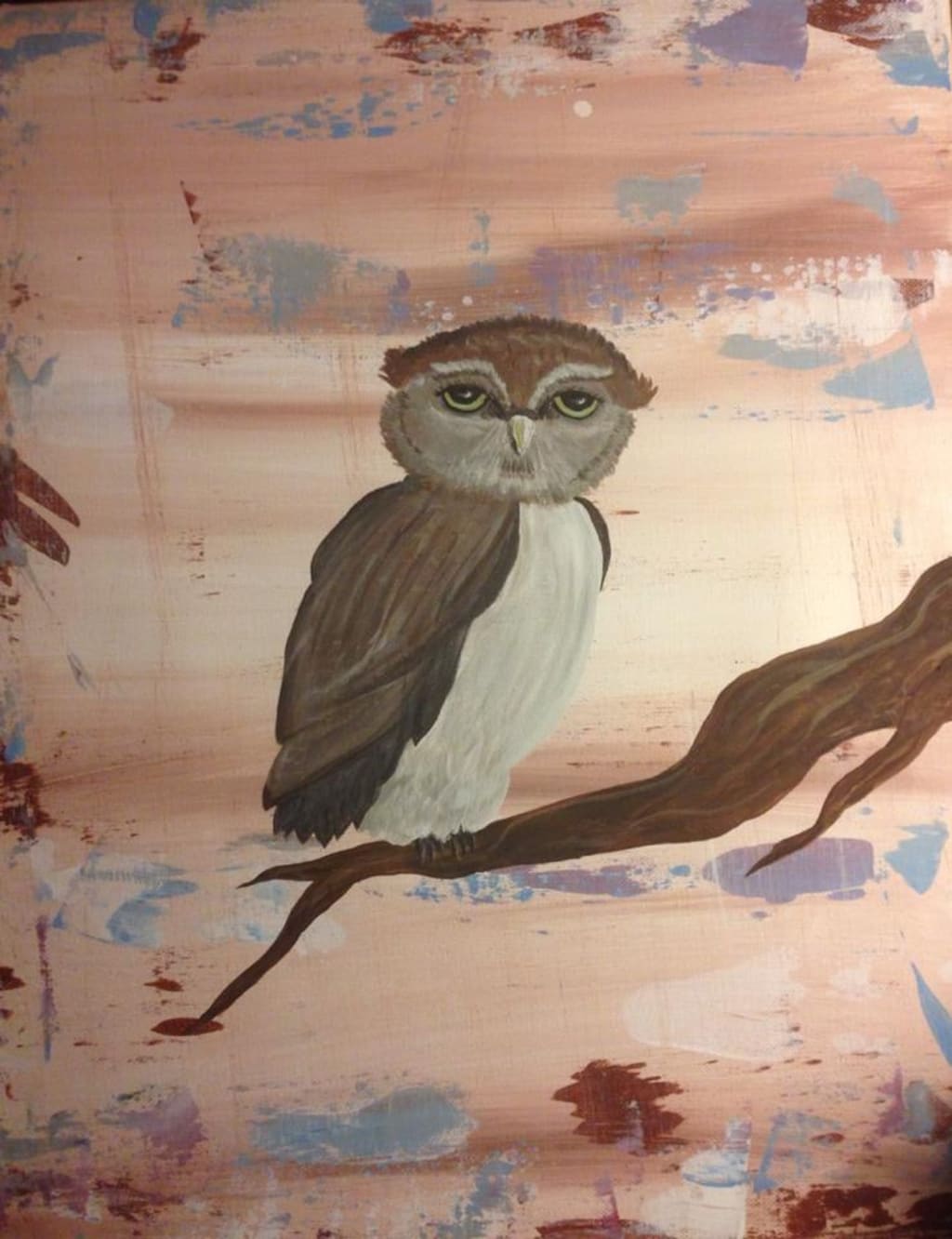 She sat up on her knees and took a deep breath, stretching her neck back to open her chest for air. Something had caught her eye moving so slightly in the corner of the porch truss. As she blinked grabbing for a bit of light from night stealing, she focused on the gray blur. She recognized a familiar little ball of fluff. A wide-eyed barn owl sat comfortably in the corner of her porch, watching the display of self-pity, perhaps spying on her.