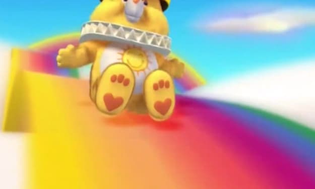 For the above Rainbow Brite cake I took vanilla frosting, some food coloring and covered it in sprinkles. Throw in a few marshmallow clouds and you have an afternoon project that will keep them busy and occupied while creating a fun dessert that they will giggle at every time they take a bite. It can be modified for cupcakes with a different color frosting on everyone or even just give them the different colored frosting and let them "paint" a cake.