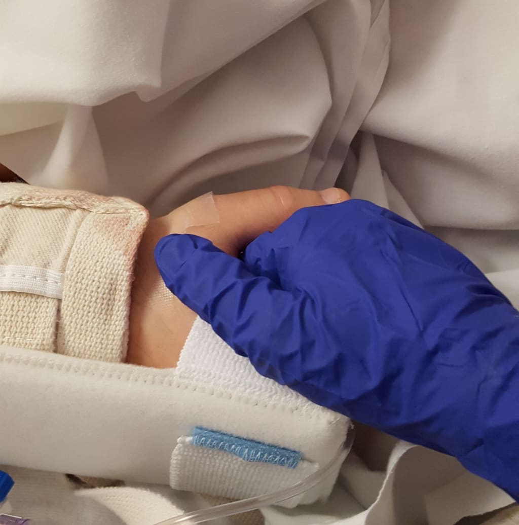 After agonizing and warring with myself for hours, the surgeon came in and told us it went well. I felt sick to my stomach because somehow, he beat the dangerous odds of the procedure with flying colors and we were left in bondage. I do not think any of us were prepared for the extent of the equipment that was needed. When I first saw him, it was like something out of a science-fiction movie. There were so many tubes and machines in and around him. I did not know how to react, let alone know what to say to him. Mom left me with him while she went to check on my sister and while she was away the scariest thing I've ever seen happened. Dad started to "choke"—he could not actually choke since he was on a ventilator, but the sensation was similar. I did not know that and so I rushed to the nurse's station to get help and all I could picture was him dying on my watch. It took his nurse forever to come to the room and when she finally did, she told me what I told you about the "choking." At that point it did not matter what she said; all I could picture was the look of terror on my dad's face and how he turned bright red with all his coughing. At that moment, I was done with hospitals and I wanted to go home. Mom came back soon afterward and when I told her what happened, she asked Dad if he was glad I was there and he squeezed my hand hard in response. I took a picture of our hands gripping each other seeing as in that moment, he was actually happy with me.