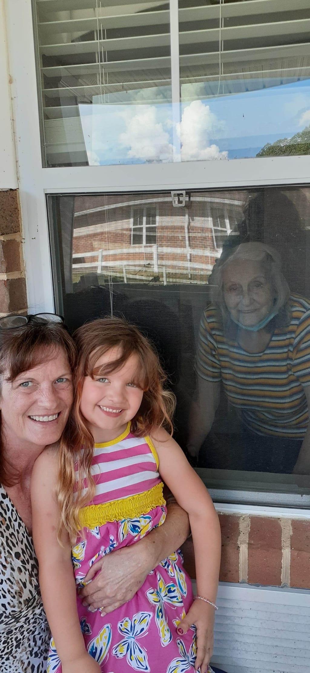It was cold outside. It was winter. There was a covered porch, but because of the virus, MaLane could not go in and Lillian could not go out. Lillian's face lit up and she saw a beautiful little girl. She remembered this was her great-grandaughter, Alliana. She is 5 years old. As they all sat at the window, Lillian touched the window and MaLane put her hand on Lillian's hand through the glass. Lillian asked about Alliana's father, London. She missed him. She had not been able to touch her daughter in a year and she longed to feel her touch.
