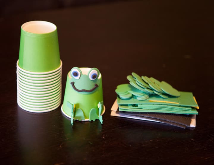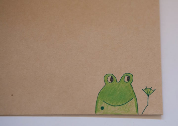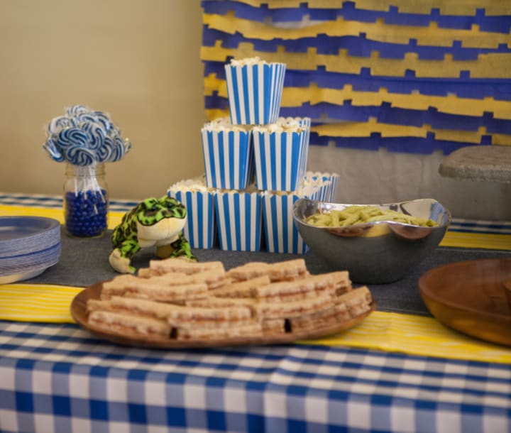 Invitations – Here is the post about the invitations. Feel free to use the template! For the envelopes, I used plain brown envelopes and drew on a little waving frog with marker and colored pencil. Hi little dude!