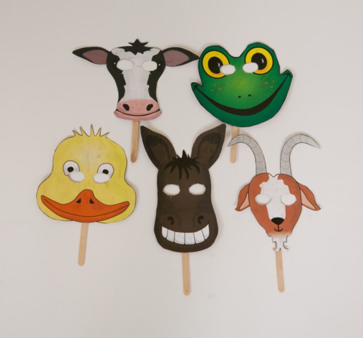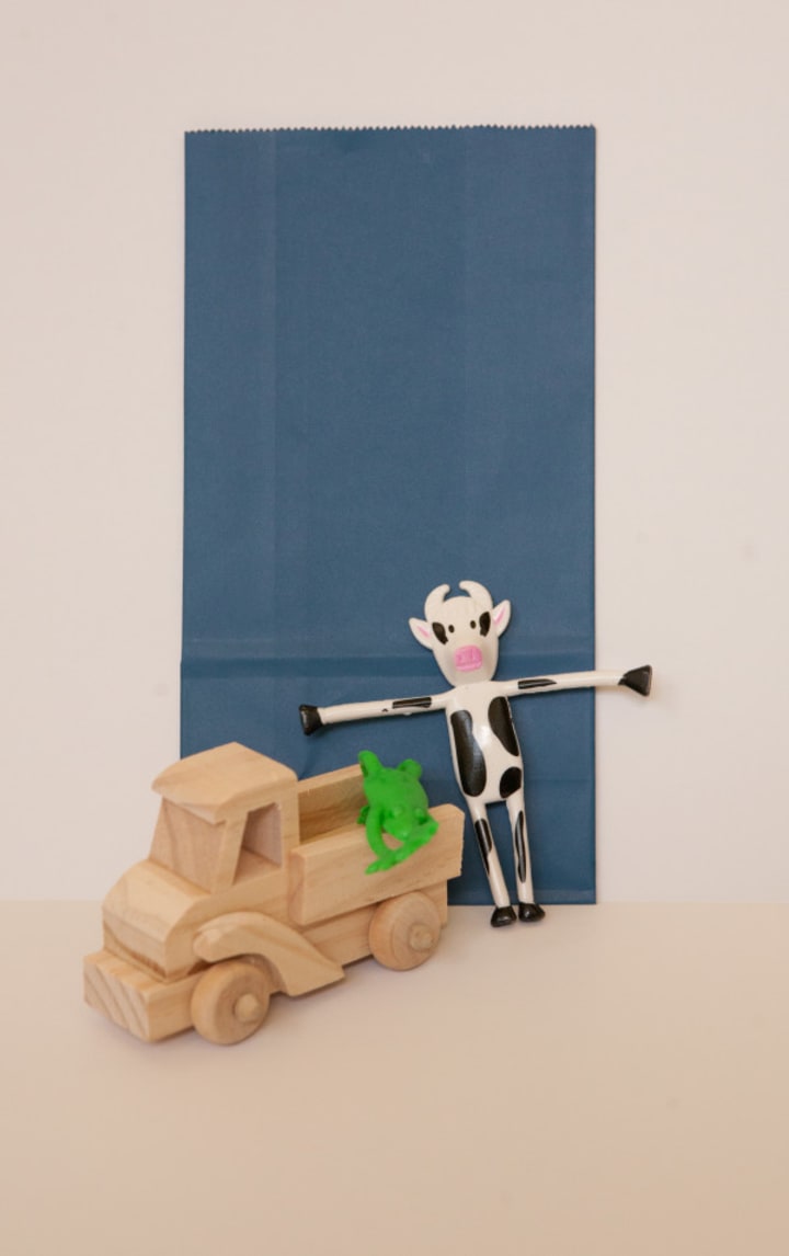 Activities – We had a couple of crafts at this party. I got some foam ornaments from Oriental Trading Company that were blue trucks. They were on clearance after Christmas and they aren’t available on their site now. Keep an eye out for them next season! We also had little foam/cup frog crafts that were premade sets from Michaels. I printed out a truck image for coloring and we also had a painting wall outside in the back yard. Finally, we had a Little Blue Truck photo cut out with a bunch of animal face masks for props.