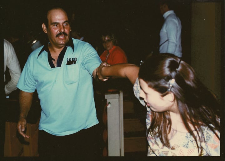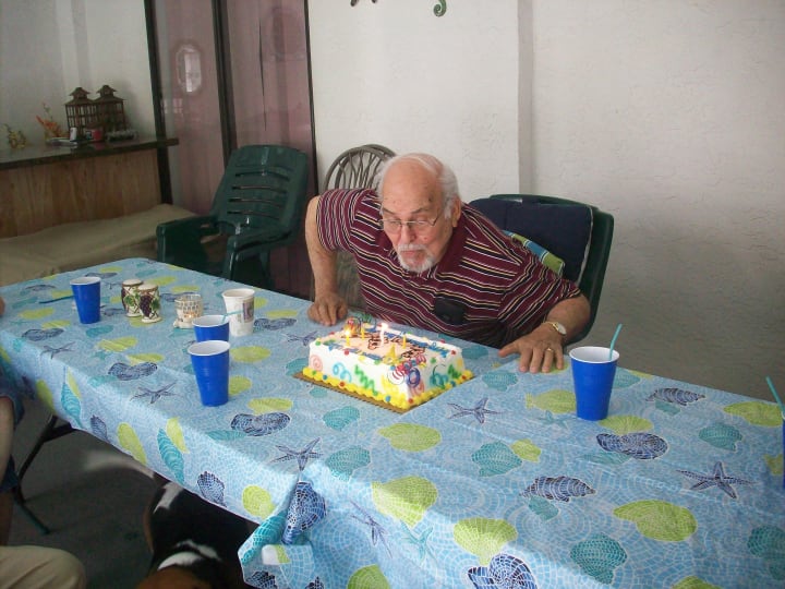In addition to golf and bowling, he enjoyed fishing. I remember my first deep sea fishing trip with him on the Double Eagle. I don’t remember what we caught; I just remember the experience of going fishing with my dad. He went on fishing trips with my brothers, including the now-infamous trip to the Keys with my brother. Crabbing was another favorite of his; when I was dating my husband, I’d discovered HUGE blue crabs in the canal behind his apartment complex. So Dad and my brother came over, nets in hand, and walked along the canal scooping up these mutant crabs. Funny thing, though; he loved catching them, but wouldn’t eat them. He called it “fool’s food” because it was messy and took too long to get the meat out.
