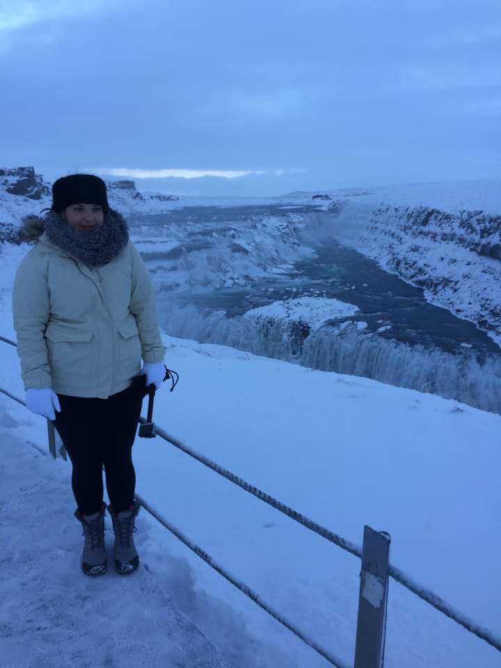 After the Geysirs, we went to the Gullfoss, which I think, is the most beautiful waterfall I have even seen to date. I have been to Niagra Falls, but for me, the Gullfoss was even better, because of its sheer beauty. However, we were absolutely freezing. The temperature was -13 and i have been in temperatures as low as -23 in Banff, Canada, but nothing prepared me for the pain I would experience at the Gullfoss.