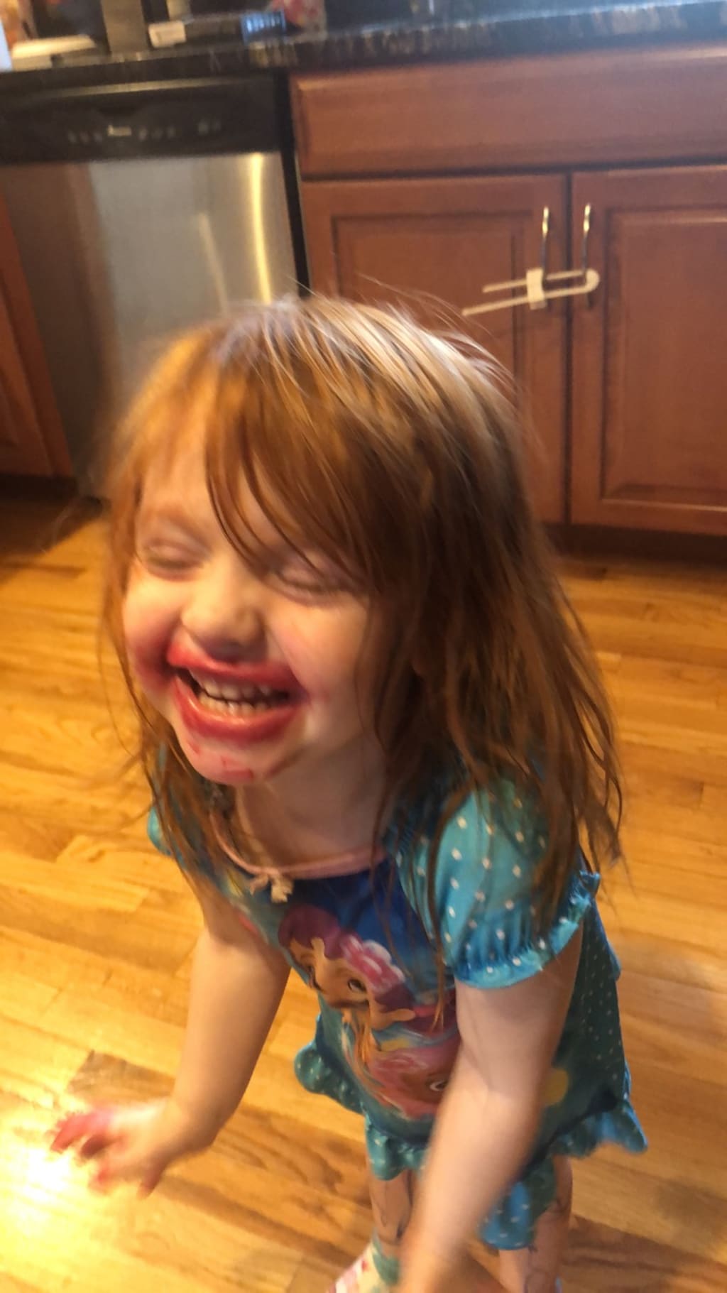Anyway, this year, we went to a 50s party. It was actually a lot of fun. I had an amazing morning; we got ready together, she let me do her hair and we matched in our leather jackets and tight black pants. She saw me putting on red costume makeup and asked for some, so I put a little bit on her and then she had fun and put some on herself later and gave me a good laugh. Of course, I wound up being the only mom dressed like this and every other little girl was wearing poodle skirts. It wasn't really an issue, my daughter was having a blast. I was actually enjoying myself too... until another mom came up to me and told me I was setting a bad example for the other kids. That my daughter was wearing "inappropriate makeup," referring to the costume red lipstick. My two year old... I had no words. We didn't stay much longer anyway and I tried not to let it kill my positive attitude for the day.