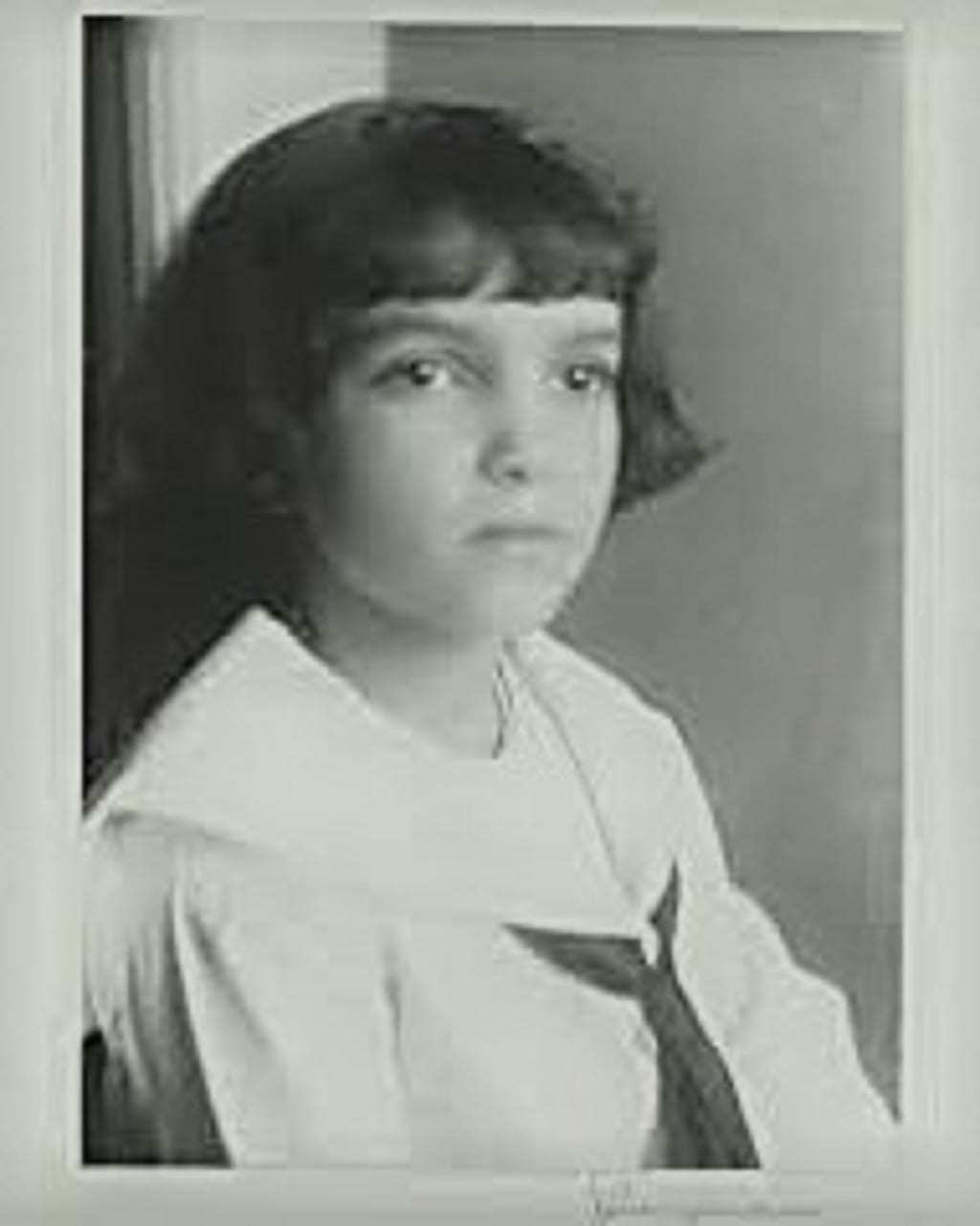 Mom described her childhood as happy. She loved school, where she learned to play the trumpet. A long lost picture of her shows a spunky girl with thick brown bangs wearing a white dress belted around her hips blowing her trumpet with her stomach sticking out. Very cute.