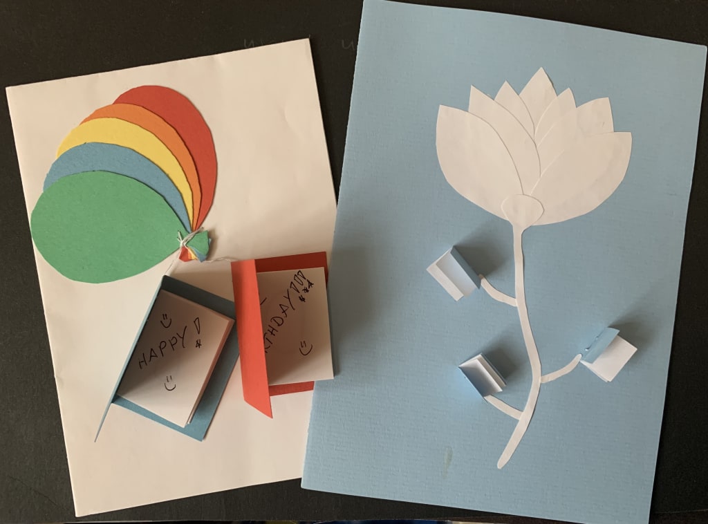 The other tradition was that I would always make them at the last minute. The very morning of her birthday, or sometimes the night before. And the inspiration would always come then, with the pressure of time, even if I had no idea what I was going to make. It was a risk of course, but somehow, I always had better ideas that way, rather than planning everything out. Some years I would try to think about it in advance and make sure that I had the necessary materials - that is, I would go to buy paper and card in different colours and make sure I had paper glue too, but other times I would just work with what I had there left over from other years. I loved this challenge! Very often, rather than drawing things first, I would use the scissors to create the shapes and cut them directly out of the paper and card. It was always fun to make these cards, always slightly daunting because of the timing, and equally a relief when I had completed the “oeuvre” just in time to be able to give it to my mother. One may wonder why I didn’t make these cards in advance, but in fact, the best inspiration often came at the last minute, and very specifically, while I was making the card itself. The time pressure I found would also focus my mind. I might start with one idea, but then realise that another idea was more interesting or worked better as I was making it. I could never have done any of this without a very good pair of scissors!